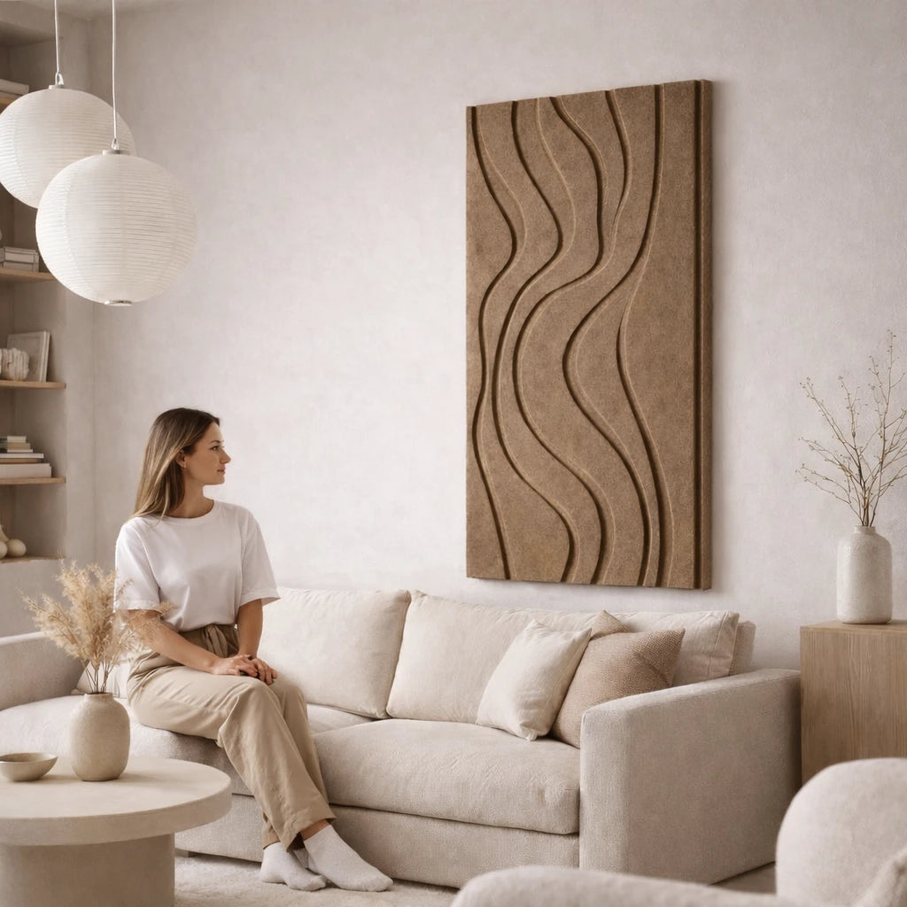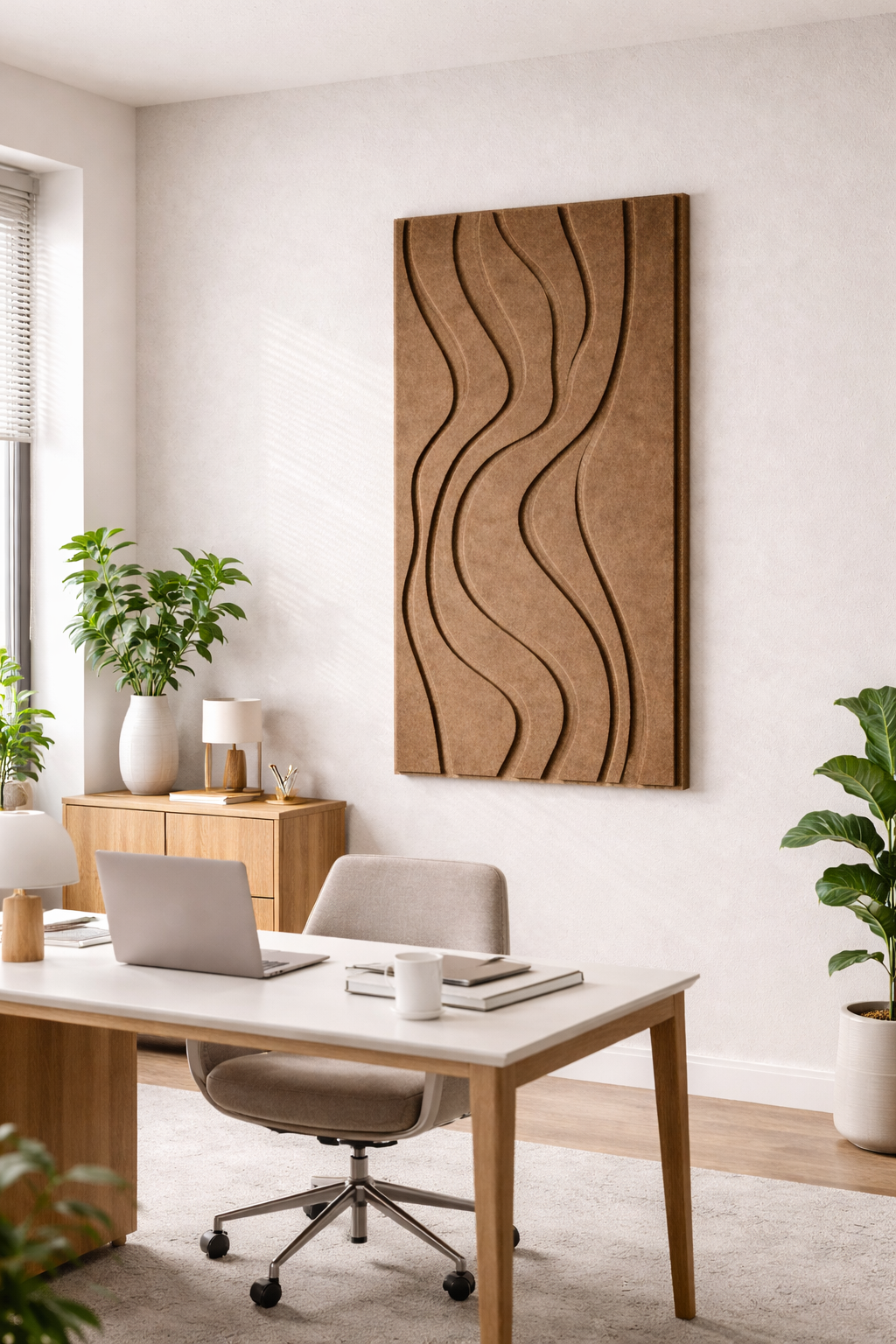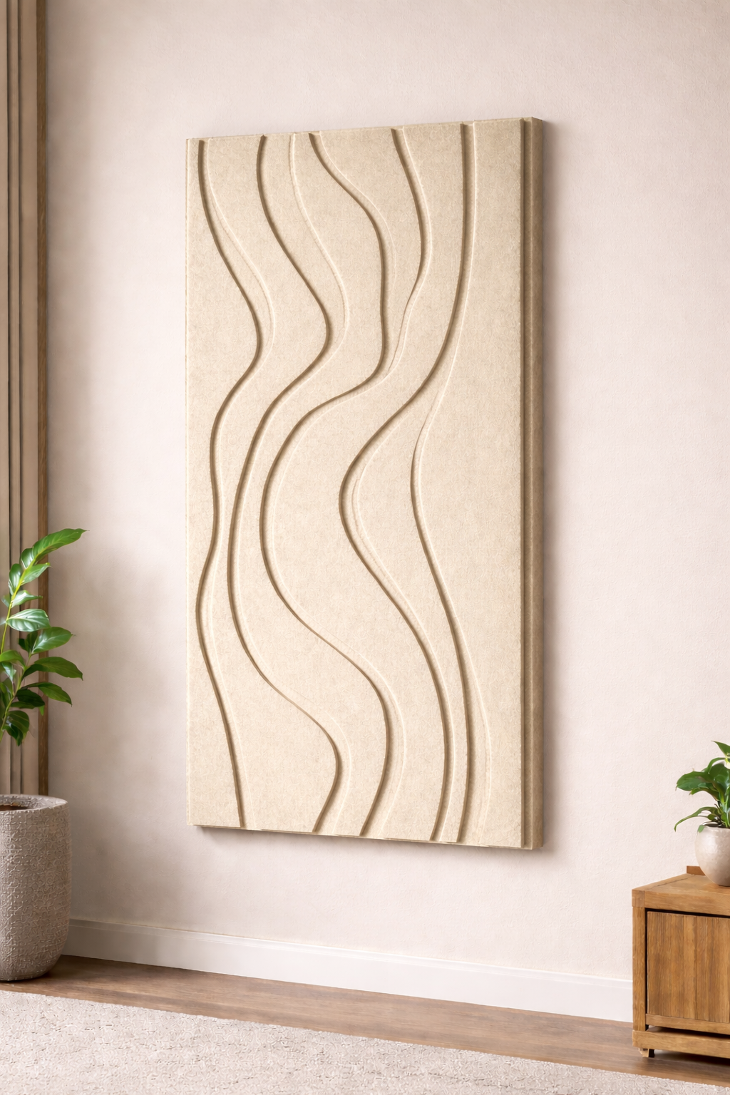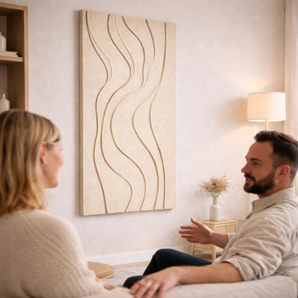 Onze akoestische panelen zijn ontworpen om aan te voelen als kunst aan je muur. Gemaakt om elke ruimte naar een hoger niveau te tillen. Maar ze zijn meer dan alleen uiterlijk: ze verminderen echo en verzachten geluid, waardoor een rustigere en meer geconcentreerde sfeer ontstaat. Perfect voor woningen waar stijl en geluid hand in hand gaan.