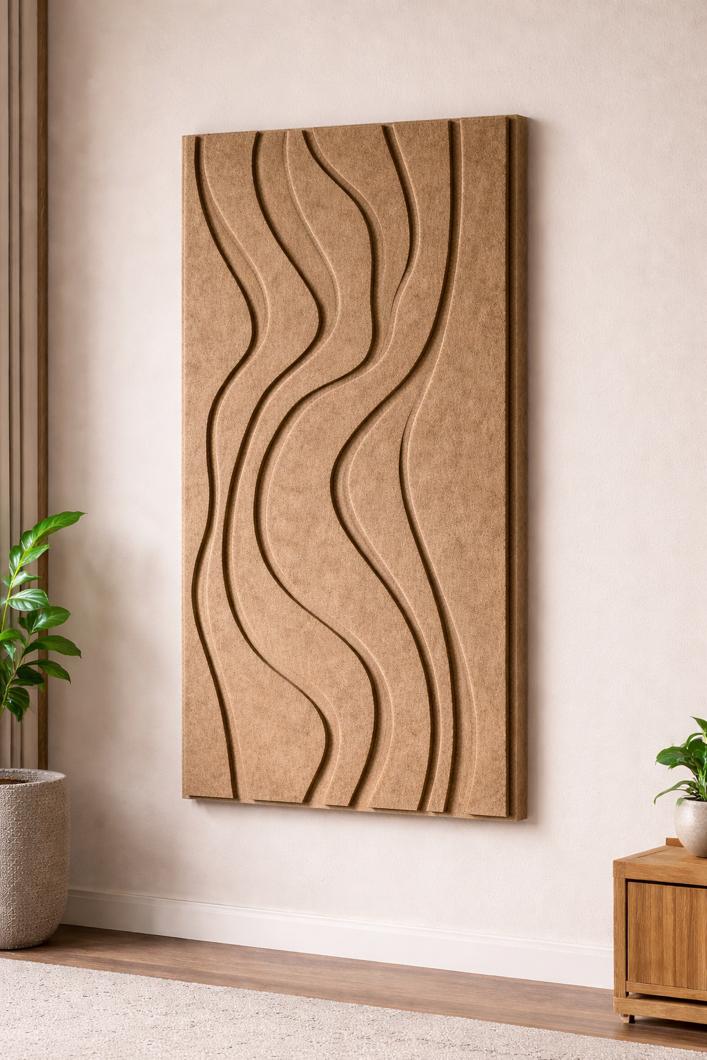 The Surge combineert een stijlvol, golvend reliëfdesign met rustige akoestiek. Het paneel is een echte blikvanger aan de muur.